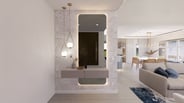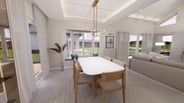 A casa de 250m² foi projetada com 3 dormitórios, sendo uma suíte do casal,área de estar, jantar e cozinha integradas, estilo americano, lavanderia e garagem conectadas. Conta também com um anexo com área gourmet e um escritório, para a família que trabalha de home office. Neste espaço, grandes janelas deixam o ambiente de trabalho mais agradável.