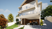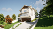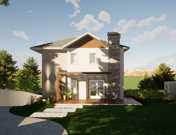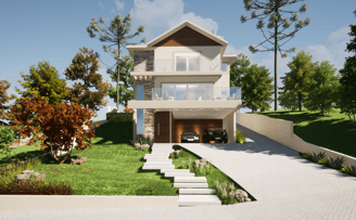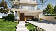 O projeto conta com uma garagem no primeiro nível, e também um acesso de veículos na parte alta do terreno, facilitando o dia-a-dia da família.